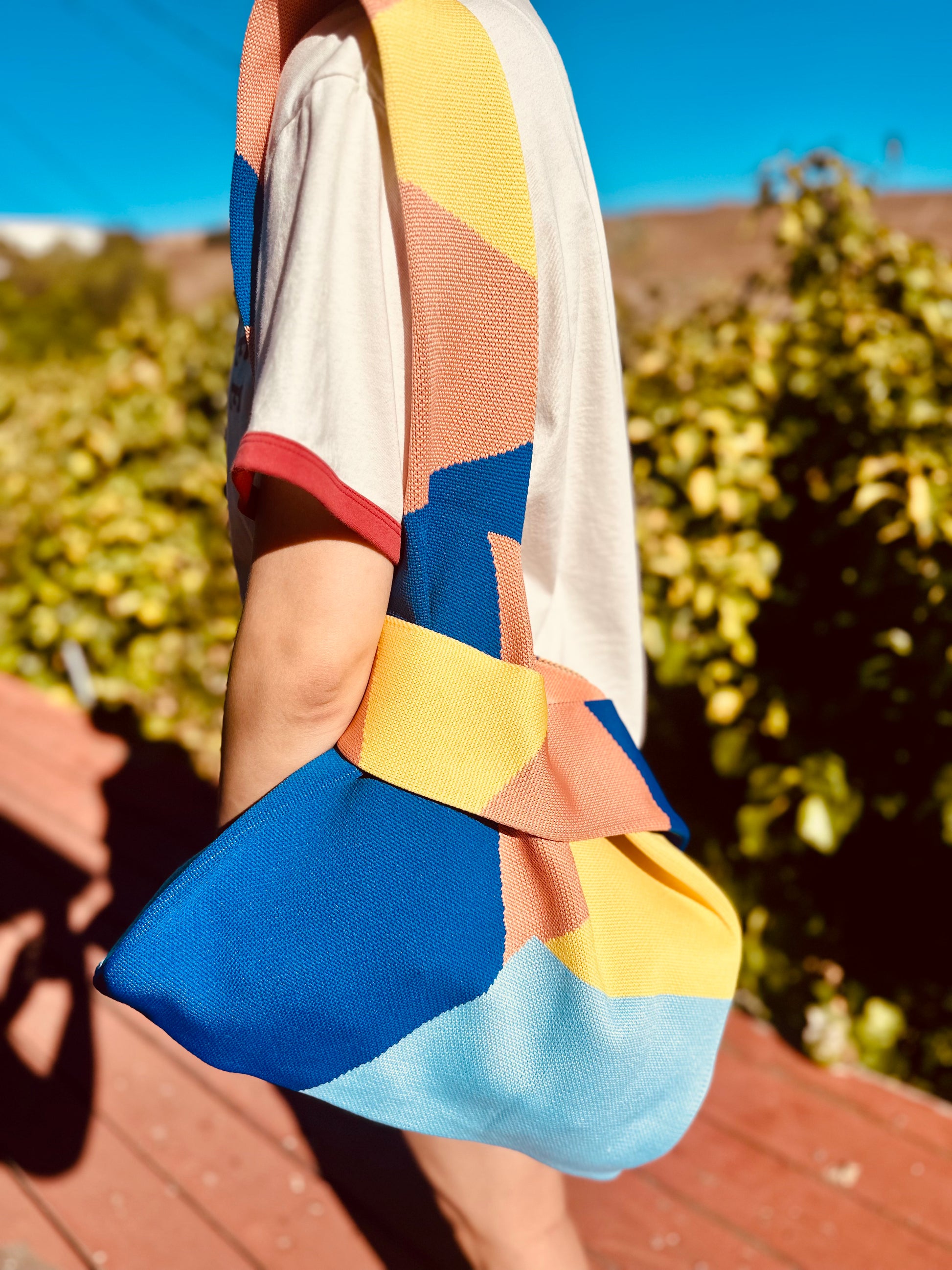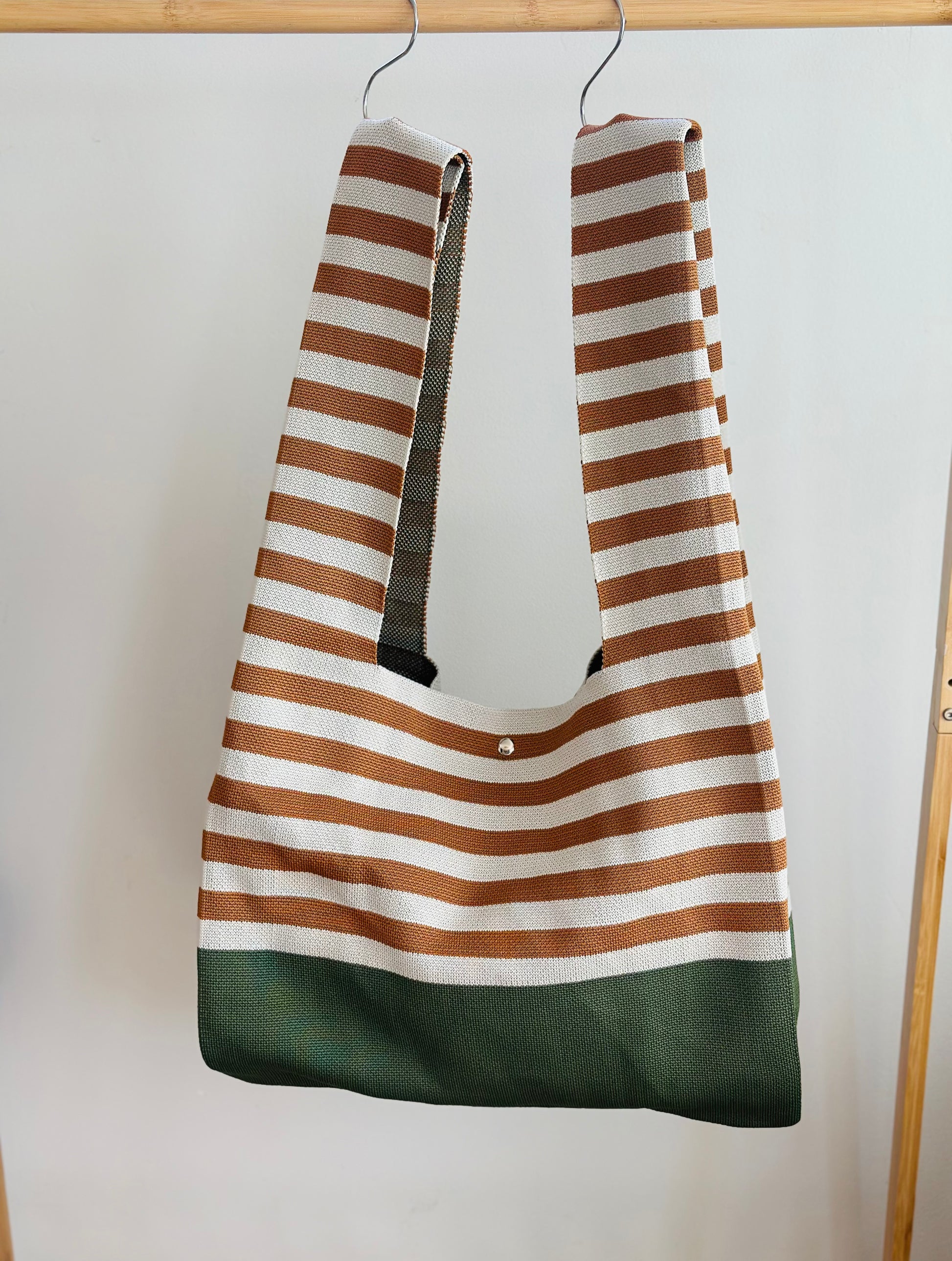 Large Knit Tote Bag - Brown Striped
